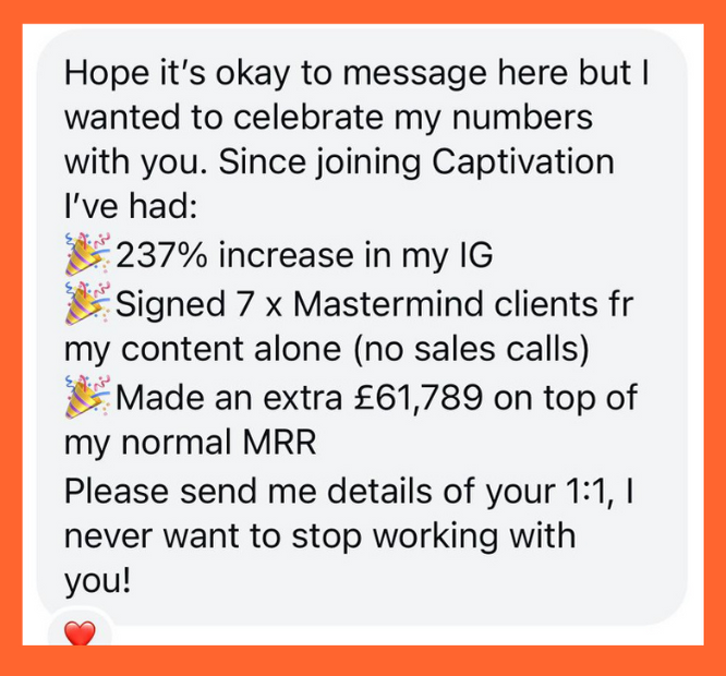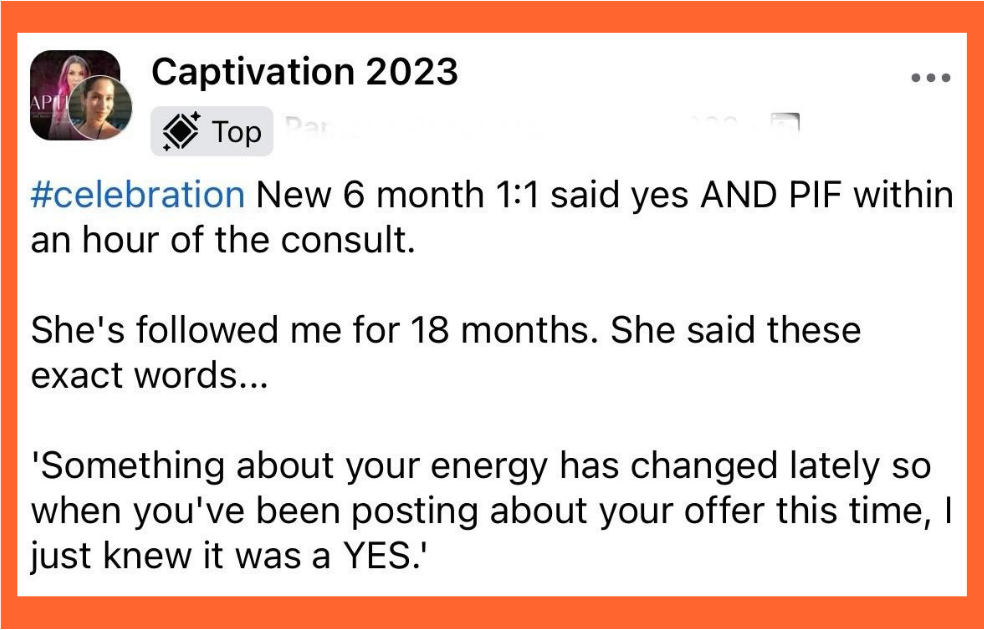 Imagine a world where your social media effortlessly attracts clients, transforms your brand, and skyrockets your sales. Welcome to Captivation, the ultimate program designed to make this dream a reality!